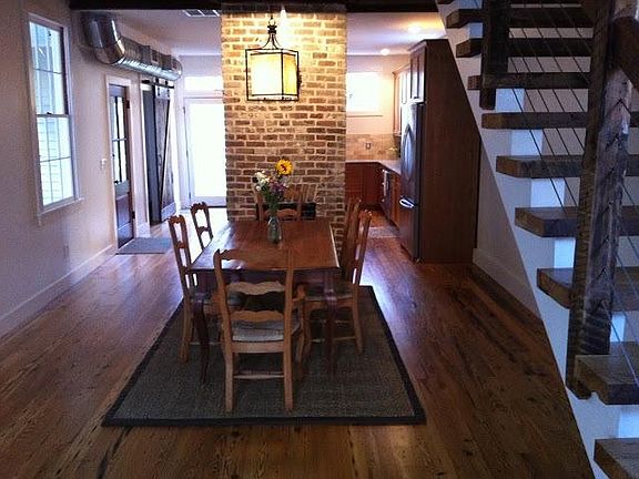 Fully Renovated 1880's 2BR, 2.5BTH Charleston Single located on Amherst Street just down from East Bay, one block south of the Cigar Factory, in Charleston's historic district. "Modern Historic" architectural design: open floor plan, exposed brick fireplaces, vaulted ceilings, floating staircase, accent wall comprised of upcycled indigenous lumber, a cistern-turned wine cellar covered with tempered glass floor hatch, and custom reclaimed wood island are just some of the many distinguishing features of this unique property. Home also boasts a fenced back yard, chef's range and stainless appliances. Short walk to Upper King, Taco Boy, and the Cigar Factory one block north to enjoy food and nightlife. House awarded prestigious Carolopolis Award for outstanding historic exterior restoration.