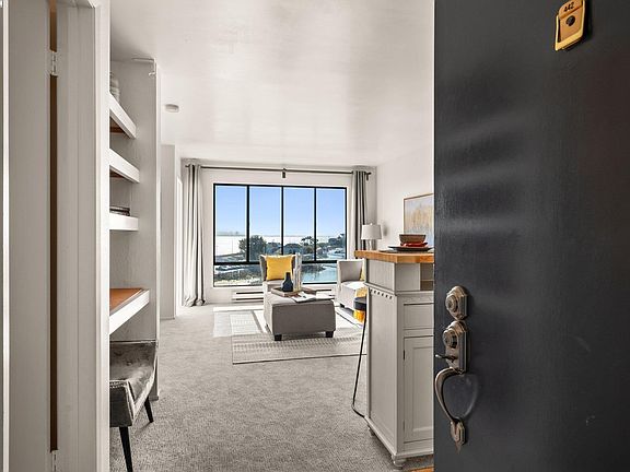 Views, Views, Views! This top floor unit features unobstructed views of the Golden Gate Bridge and the San Francisco skyline! Located in the resort style Watergate community; this light filled studio is sure to impress the most discriminating buyer. Tastefully updated throughout, an enclosed sunroom, and new carpet and paint; all you have to do is move in and enjoy your days watching sunsets from every window; or enjoying the amenities at any of the 4 pools, a game of tennis on one of 2 courts, movies in the clubhouse, exercising in the gym, or walking along the bay. All of this in an amazing location close to everything!