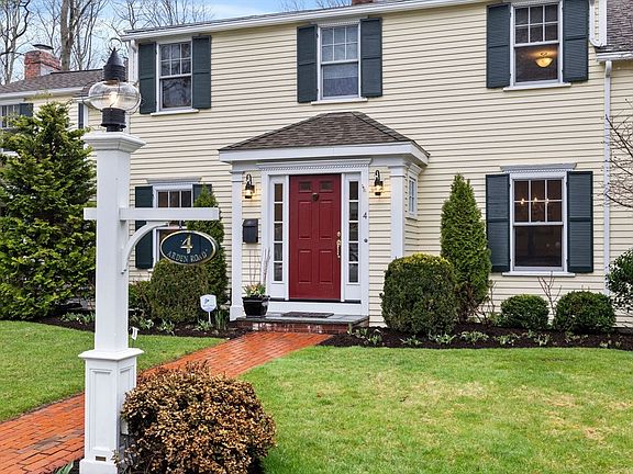 Inviting Colonial with a charming farmer's porch in desirable Dana Hall. The gracious entry leads to a lovely Living rm with a fireplace & Dining rm w/wainscoting. Terrific open concept Kitchen/Family rm w/bright sunny breakfast nook, stainless steel appliances, granite & a pantry. There is a dedicated, custom built-in homework/study area. The Great Room has a wet bar, fireplace, & direct access to the back deck & brick patio, fantastic for entertaining. 5 spacious bedrooms, including a generous primary suite w/walk-in closet & spa-like bath. 4 additional bedrooms, including an en-suite & convenient 2nd floor laundry. The finished LL has a terrific playroom, bonus laundry rm & oversized 4 car garage. Idyllically set on a cul de sac overlooking conservation land. Come explore the paths & fields of Beebe Meadow w/the daffodils in full bloom. You are near the town center, train, Brook Path & brand new Hunnewell Elementary School. It is the home & location you've been waiting for!