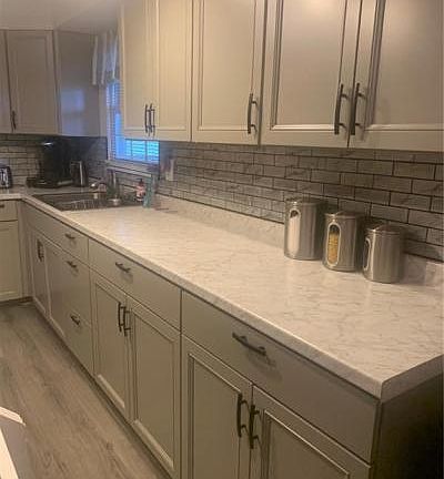 Great square footage for the price. This stone and vinyl welcomes you to 5 bedrooms, 3 main floor, 2 lower level. All new gorgeous grey cabinets and all new bath. Eat in kitchen with stainless appliances, nice counterwork space. A family room on lower level with a fireplace, upper level living room. Large partially fenced back yard. Ample parking with 2 double driveways.