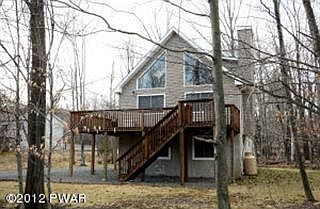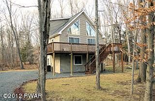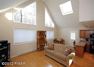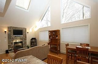 Ever say ''Go jump in a lake?'' Now you can! Like new chalet is 5 minutes to 3 lakes - including Lake Wallenpaupack! Distinctive stone fireplace and hardwood floor in the living area perfectly combine for a retreat-like setting. Airy home features cathedral ceilings and lots of natural light. 3 beds/ 2 baths and and a family room too. Among the included goodies is a whisper-quiet stainless dishwasher in the kitchen... and the flat-screen TV over the fireplace.