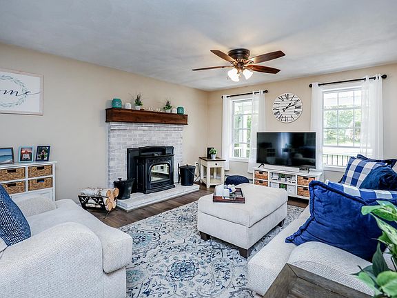 Discover your idyllic retreat in this expanded Cape sited on a serene cul-de-sac street. Boasting over 2 acres of land, a tiered deck and above ground pool, this home offers the space for outdoor entertaining, gardening or simply relaxing. The classic farmer’s porch is a perfect spot to relax and enjoy the peaceful surroundings. Step inside to find a warm and inviting atmosphere. The oversized, newly updated eat-in-kitchen with quartz countertops, double island and stainless appliances including beverage fridge, flows seamlessly into the large family room with custom built-ins. The living room with pellet stove, full bath with laundry, and the first floor bedroom; flexible to be an office or dining room, complete the first floor. Upstairs you’ll find a large primary bedroom accessible to the full bath and two more bedrooms. The finished lower level is ideal for a home gym. Being approximately 10 minutes to routes 95 and 495, and 20 minutes to the beach and Newburyport, this is the perfect place to call home.
