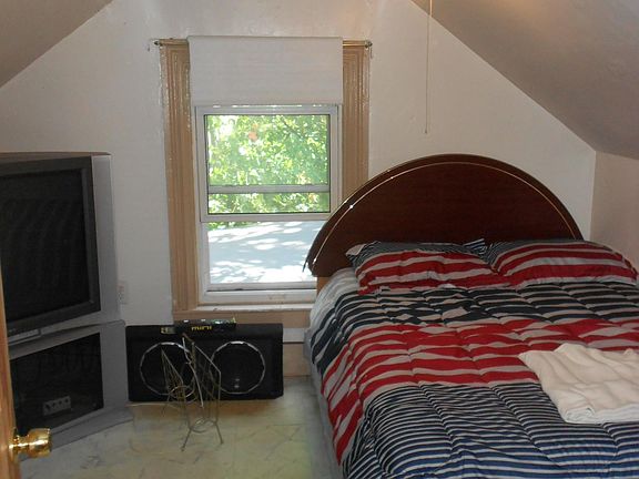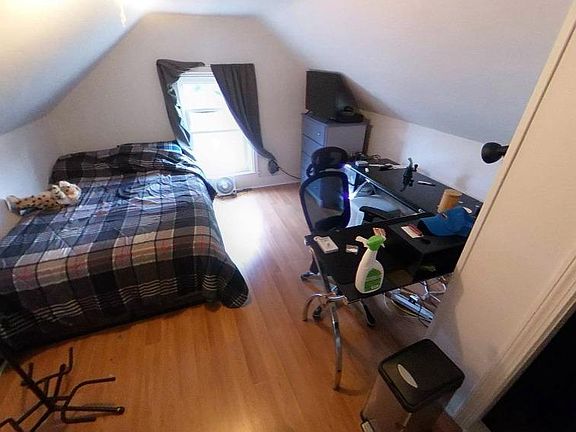 Large front facing attic bedrooma available within Spacious and Charming Duplex 3-4 Bed/1 Bath close to Stony Brook T! Featuring BRAND NEW Eat in Kitchen with Pantry! Complete with Updated appliances including Dishwasher, Microwave and Gas Stove! Spacious Living Room with Hardwood Floors and Ceiling Fan! Modern and Clean Bathroom with over sized vanity and cabinets! GIANT Bedroom with exposed brick and tons of original detail! Brand new hardwood floors in upstairs bedrooms. Good closets in all three rooms! Huge Front Porch!