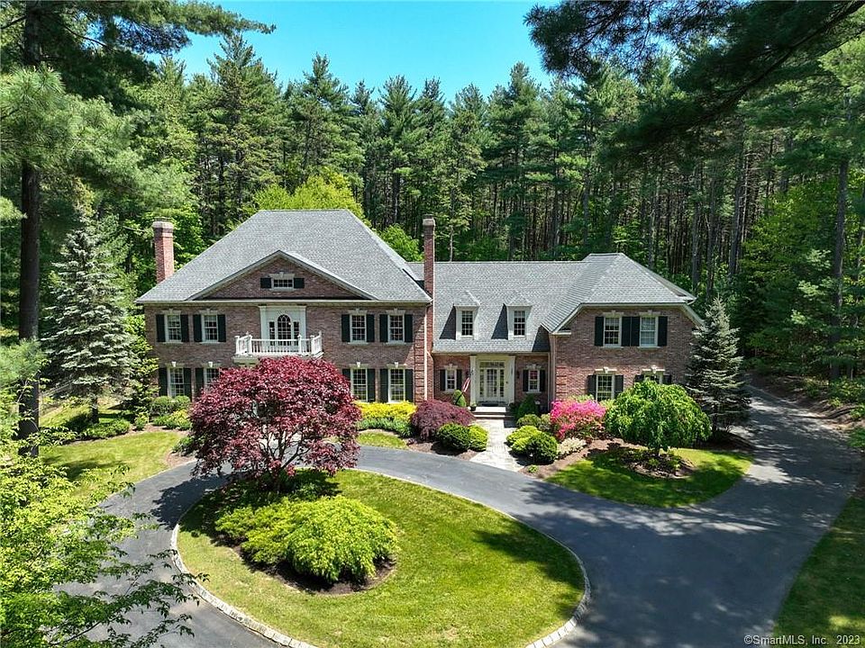 This Stately Brick Georgian estate in Devonwood sits on 1.28 acres of land that backs up to Avon Old farms and has all of the privacy that a property of this stature deserves. Gorgeous, professionally landscaped gardens frame this exceptional property. Upon entering this 5 Bedroom, 6 Bath sanctuary, you are greeted by a 2 story foyer that features a marble foyer and a turned open staircase. The Formal Living Room, Dining Room and Family room include gas fireplaces with gorgeous custom mantles and Built-in cherry cabinetry. The chef's kitchen is enhanced with high end appliances, granite countertops and Dark cherry cabinetry. Off the kitchen is a small office, mudroom with cubbies, a full bathroom, and a light filled sunroom that leads to an inviting patio. There is also a private wing on the 1st floor with a bedroom and a full bath, perfect for an in-law or nanny. 2 Staircases lead you upstairs where you will find a master suite with yet another fireplace, 2 large walk-in closets and even an extra closet for your shoes, and a newly remodeled bath with a large soaking tub and oversized shower. Down the hallway is where the executive office is housed as well as 3 more bedrooms 2 baths and a study loft with built in desks. The third floor has a game room, and a full bath. The lower level has high enough ceilings for a golf simulator. There is an over sized 4 car garage that has loads of storage. Once you enter this house you will surely want to make it your home. Roof is less than 5 years old, master bathroom was recently completed(2022), Hardwood floors have been refinished, newer HVAC system and water heater, New granite in kitchen. Sprinkler system just updated. all 4 fireplaces are propane gas. There are coffered ceiling in the family room. 10+ foot ceilings throughout 1st and second floor. Gorgeous circular driveway with ample parking. Please see attachments for a full list of upgrades. Automatic generator