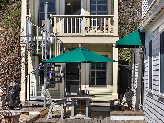 Provincetown West End home, located on a private way short distance to Commercial Street. Rebuilt from the ground-up in 2004 as a quaint two story 390 s.f. detached home. This property is part of a soon to be formed 3-unit association with roots tracing to the Atwood Inn which was previously reimagined into 3 residences and carefully tucked into its own compound, surrounded by charming white fencing and lush landscaping. This home was carefully sited and designed to embrace seasonal peeks of the harbor, and rooftop views of neighboring West End properties. A stone walkway leads you to this home which is tucked into a quiet area of the compound. The home is bright and airy and well connected to the exterior with two decks ideal for lounging and entertaining. Enter the unit into the living area with working kitchenette, lounging area, and a large wall of glass connecting you to its outdoor patio/deck. Up a spiral staircase is the primary bedroom with gleaming wood floors, vaulted ceiling, along with the bathroom with shower. There are oversized windows with postcard views and a French styled door leading to a private deck. The home has split AC/Heat, and one onsite car parking.