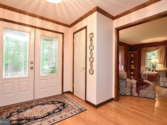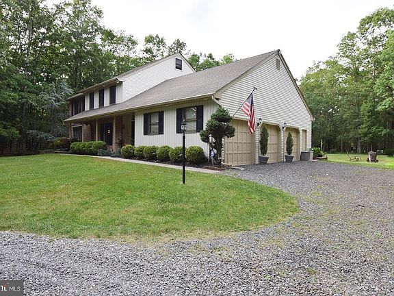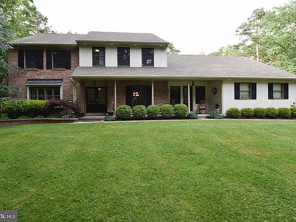 Privacy abounds on this nearly 2-acre lot in the beautiful Autumn Rise Development in historic Medford. Medford is a wonderful family town with award winning schools, terrific parks, quaint main street shops, restaurants and breweries, and host to annual community parades and events. This home is a true oasis nestled on a private flag lot with a circular driveway which welcomes you to this beautiful brick front, center hall colonial, offering plenty of parking for family and friends. This 4 bedroom 2.5 bath home with a first floor office has many amenities and upgrades. As you approach the front of the home you will appreciate the wide covered porch which features under soffit lighting on both the main and second level. Entering the front double doors, you will be greeted by gleaming hardwood floors that flow into the formal living room and dining room. Dentil crown molding surrounds the foyer and leads you either up the beautiful wooden staircase or towards the cozy carpeted family room which flaunts ceiling beams, recessed lighting and a brick wood burning fireplace. Open to the family room is the large eat-in kitchen which features ample cabinet space, granite countertops, ceramic backsplash, recessed lighting, stainless appliances, double ovens, under cabinet lighting and a Jenn Air range. The natural lighting welcomed through the casement windows allows you to enjoy the beauty of the park-like backyard while drinking your morning coffee. Off the kitchen is a tiled floor hallway that leads you to the guest bath, as well as the laundry room which includes a utility sink, gorgeous cherrywood cabinetry, ceramic tile floor, newer appliances and a double door closet. Entry into the oversized three car garage can be found here and features a large workbench for your tools and equipment, offers ample parking for your cars, as well as other storage needs. At the end of the back hallway, a private home office is found adjacent to the laundry room. The office features natural hardwood floors, recessed lighting and a private entry door to the front of the home. This space is perfect for those working remotely or a professional requiring separate entry access apart from the family residence. This office space may be easily converted to an extra first floor bedroom if desired. Entry to the private back yard may be accessed from the door off the hallway or through the large screen room located directly off the family room. The screen room boasts tile floor, cathedral ceiling with skylights and is a favorite feature of this home to enjoy outdoor dining during the warmer seasons. Back inside, you can make your way down to the large finished basement which is a perfect place for entertaining! Here you will find a media area, pool table, built in bar, as well as an area for dining, playing ping pong or space for your favorite indoor hobbies. Also featured in the basement is an unfinished area which includes two sump pumps and built-in shelving for all your storage needs. The second floor of the home features a large primary suite accessed by double door entry. Featured are 2 walk-in closets as well as a recently renovated master bathroom that includes a double vanity, Jacuzzi tub, linen closet and a waterfall shower. Off the master bedroom is a bonus room currently used as a gym; this space can easily be converted into a dream walk-in closet / dressing room. Additional walk-in attic storage is easily accessible off this bonus room. 3 generously sized bedrooms with ceiling fans and crown molding, a full bath with double sink vanity and a linen closet complete the second level of the home. Additional walk-up attic storage is avaialble from the middle bedroom. The entire home has Anderson windows, dual zoned HVAC, smart thermostats, extensive recessed lighting and so many more features for you to enjoy. Don’t miss out on this remarkable property!
