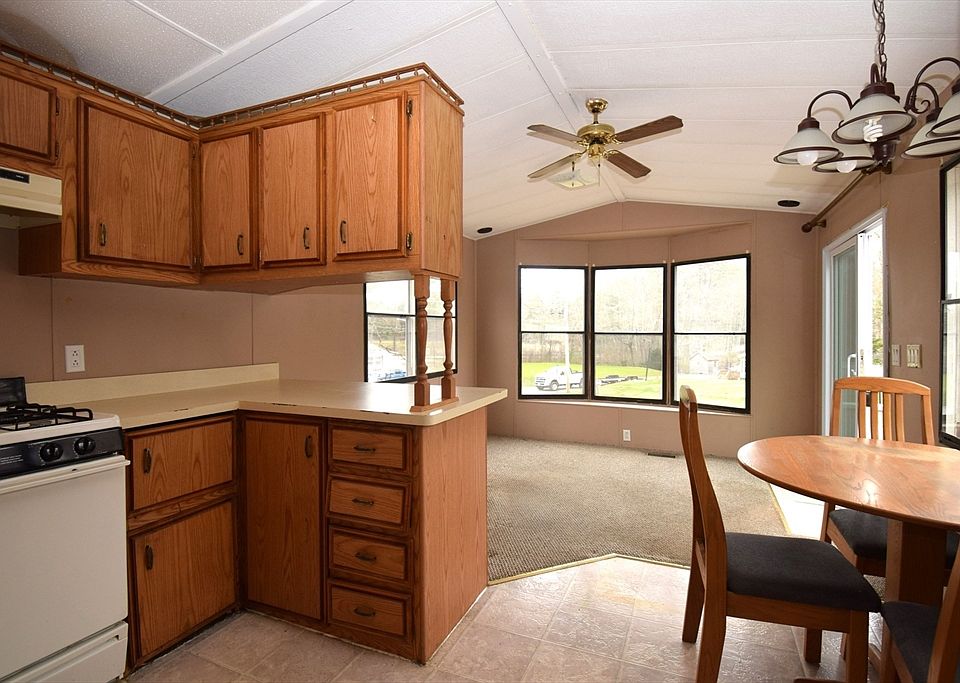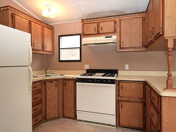 Welcome to Rock Rimmon Cooperative Park, a community of small homes offering simple and low maintenance living with no age restrictions. With 408 square feet of living space, this home has an open concept living room/kitchen area with cathedral ceiling. The newer sliding glass door floods the space with light. The bedroom has a wall of built-in closet and drawer space with a door to the adjacent bathroom. The expansive deck is a perfect place to relax or grill with friends. Pets are allowed with park approval. This home is in need of a new heating system and hot water heater, new flooring and counter top. The appliances are older, but in working condition. A fresh coat of paint throughout will brighten the house. Don't miss this opportunity to build a little sweat equity and live affordably.