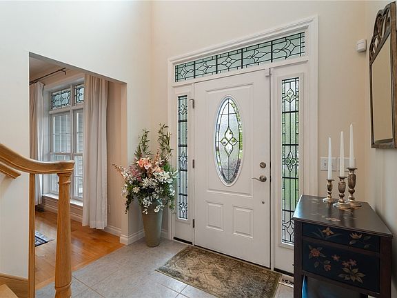 Welcome to 4 Ayla Way—a meticulously maintained, owner-built home blending classic comfort with custom craftsmanship. Step into a sun-splashed entry with a vaulted ceiling, custom picture window, and leaded-glass details. A serene sitting/music room sits opposite a bright formal dining room that transitions seamlessly to the sunny eat-in kitchen. Maple cabinetry, expansive solid-surface counters, tile flooring, and a shapely peninsula anchor the space, while the breakfast nook overlooks gardens and a variety of mature plantings. Unwind in the fireside family room, where adjacent sliders spill onto a private deck embraced by nature. A dedicated main-level laundry room, a two-stall garage with a pegboard wall for tool storage, and a guest half bath add everyday convenience.