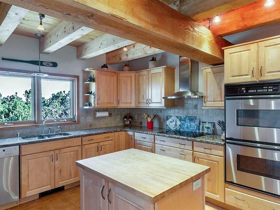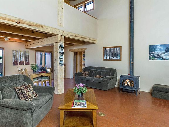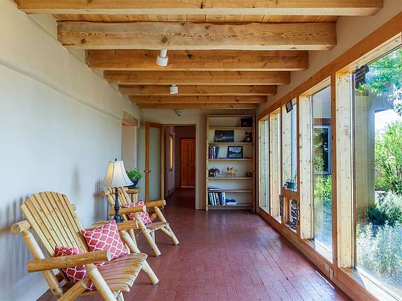 Lovely passive solar Eldorado home with open concept and flexible floorplan. Spacious great room with dramatic high ceilings and brick floors. Remodeled kitchen has granite counter tops, stainless appliances, double ovens and eat-in bar with pass through window. Three separate and walled outdoor areas. Large and sunny, two-room 500 sq. ft., studio with french doors and real wood plank floors. Large upstairs loft has private bath, office/seating area and view deck. Guest/kids wing has two bedrooms, full bathroom and private walled courtyard. Generous passive solar sunroom does a wonderful job heating the home in the winter. Shared well with just one neighbor.