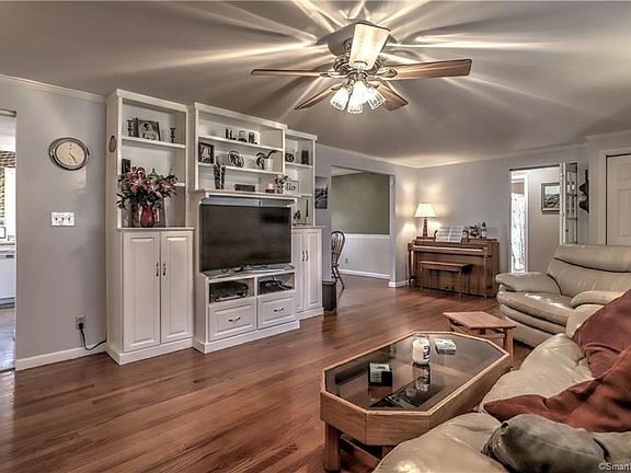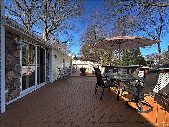 You will find a versatile floorplan with room for everyone in this 5-BR, 3 full Bath Colonial w/covered porch close to schools, shopping and highways. Upon entering, the Living Rm boasts built-in entertainment center and bookcases flanking the marble surround fireplace with decorative mantle, and HWD floors. The large Kitchen and Dining Rm are open to one another and continue into the Sunroom with a vaulted ceiling and skylights for plenty of natural light. The working area of the Kitchen is well thought out with a generous amount of cabinets and Corian counter tops. The breakfast bar extends into the Sunroom which has sliders to the huge rear deck. There is a full hall bath and 2 BR's on the main level which can be perfect for a home office. Upstairs the MBR suite has vaulted ceilings, bathroom skylight, whirlpool tub & shower. Two Additional BR's, conveniently located Laundry room and 3rd full bath round out the 2nd floor. The Playroom in the L/L adds another 528 Sf of living space, is heated by a propane fired cast iron stove, and has plenty of storage and the house mechanicals. There is an oversized 2-car attached garage with an additional work room, vinyl siding, thermopane windows, 200AMP electrical, all in a central location on a cul-de-sac street!