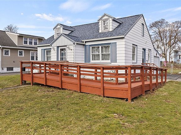Step inside through the front entry hall and into a cozy living area filled with natural light and hardwood flooring. The kitchen boasts convenient cabinetry and counter space, perfect for preparing home-cooked meals. Both bedrooms are well-sized, offering comfort and versatility, while the finished attic provides an additional bonus room—ideal for a home office, playroom, or guest space. Enjoy year-round comfort with central air conditioning and forced air heating, keeping the home cool in the summer and cozy in every season. The well-maintained basement offers additional storage space or the potential to be customized into a workshop, fitness area, or hobby space—whatever suits your needs. The home also features an accessibility ramp leading to the front door, ensuring ease of entry. Outside, the fully fenced backyard offers plenty of space for outdoor enjoyment, while the one-car garage provides additional convenience and storage. Located in the town of Greece, this home is just minutes from local shopping, dining, parks, and expressways, making everyday living a breeze. Don’t miss your chance to own this charming home—schedule your showing today!