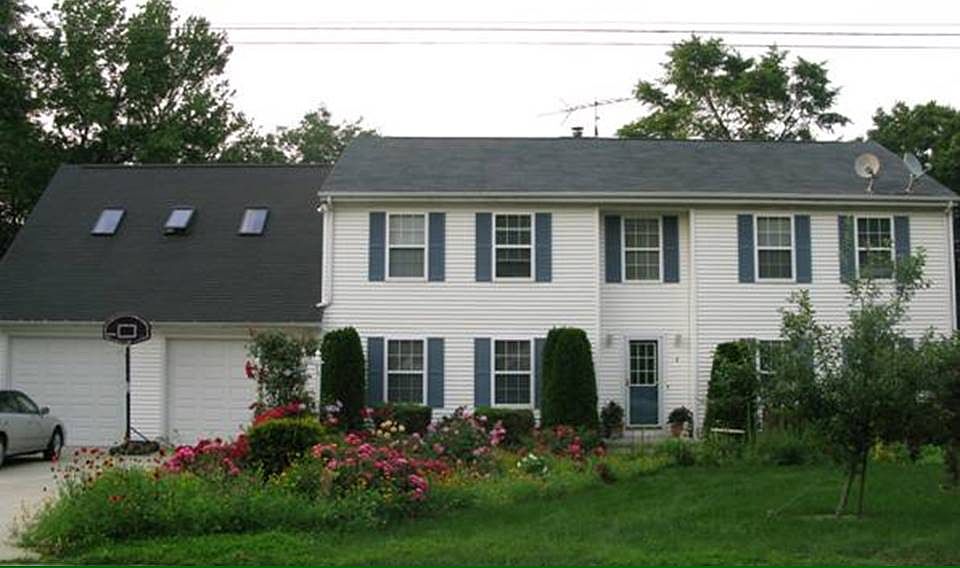 Walk to Oak Groves private beach from this Spacious year-round 4-5 bedroom, 3-bathroom Shoreline Colonial with open floor plan & larger than ordinary two-car attached garage situated on beautifully landscaped parcel that provides botanical interest for every season on a private cul-de-sac. Featuring 1st-floor bedroom with attached full bath & sliders that step out to Huge deck with expansive views. Formal Dining room, large Livingroom, Kitchen with island and granite countertops. From there, step out through sliders leading out to the deck. The second floor will also delight, boasting vaulted ceilings and large family room with a three-sided propane Peninsula fireplace that heats as intended, as well as sliders that step out to balcony with water views where the gentle morning sun & breezes could offer additional quiet space for relaxing. Continue back to the remaining 3 bedrooms which includes a large Primary bedroom suite with walk-in closet and additional full bathroom and bonus room. Plenty of storage space in both the large finished bonus room over the garage as well as the concrete-floored 4 high crawlspace.