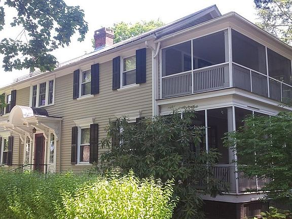 Classic and stately colonial quietly situated in the desirable Smith College neighborhood, minutes to lively downtown Northampton. This grand property offers endless charm with all the modern comforts. The brand new kitchen is complete with quartz & butcher block counter tops, energy star appliances, farmer sink faucet with built in water filter, a walk in pantry with original cabinets, and a picture window over looking the private garden. Both dining room and formal living lead to newly restored porches. Step into the sunken family room/library and admire the grand fireplace (one of 4 in the home) or the wrap around built-in bookcases. 4 bedrooms including a sunken master ensuite, 3.5 baths, many upgrades including newer heating system and replacement windows, a well maintained slate roof, garage with bonus storage space, full basement, fenced in yard with garden, goshen stone patio, and water fountain feature.