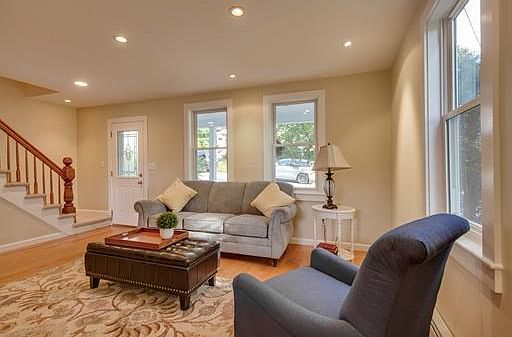 Are you looking for a warm and welcoming home, that you can move right into and enjoy? Then look no further than 4 Bates Avenue. Tucked away on a quiet side street that is walkable to town, you will find this great updated Colonial. A front porch greets you and beckons you inside. The open floor plan features a living room with warming gas fireplace, dining room with built-ins and updated maple kitchen with gas range, tile backsplash and slider leading to the maintenance free Trex deck. We love the family room adjacent to the kitchen, featuring sunny southern exposure, vaulted ceiling, skylights and a wall of bookcases. 1st floor laundry with 3/4 bath. Upstairs are 3 well-sized bedrooms and a full updated bath. The interior is freshly painted in stylish colors and the upstairs carpet is brand new! Fully fenced-in yard with shed and play area. This home is ideally located just minutes from vibrant downtown Maynard with shops, restaurants and an active art scene.