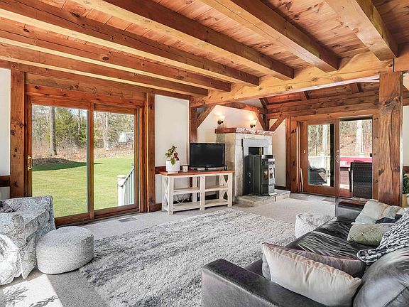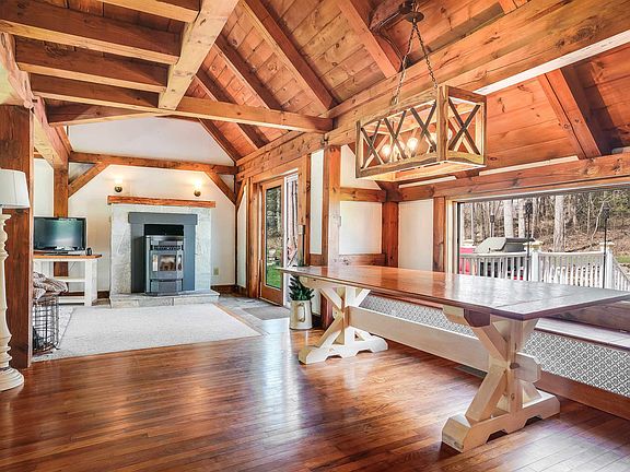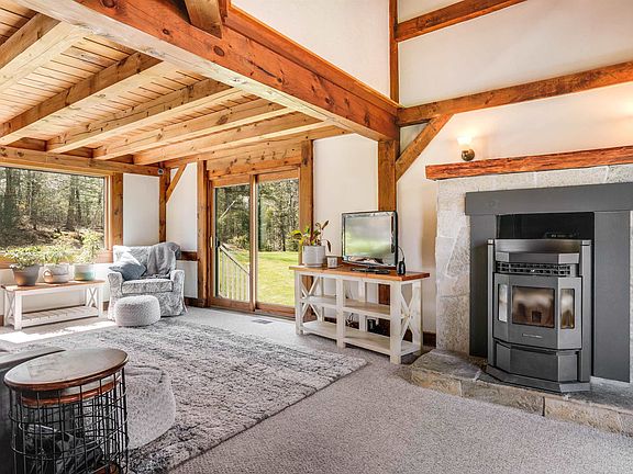 Come discover this homes unique charm & investment potential! Boasting a generous 3,050 sqft of living space, this property encapsulates the essence of lake house living w/ its post & beam construction, high ceilings, & a cozy pellet stove in the warm living room. The heart of the home is the spacious kitchen, perfect for entertaining. This home offers 4 well-appointed bedrooms, 4 bathrooms & finished basement providing ample space for family or guests. The interior's blend of rustic charm & modern amenities creates an inviting atmosphere. Outdoor enthusiasts will appreciate the deeded rights to the lake, boat launch & private beach access, promising endless recreational opportunities. Investment-minded buyers take note of the legal accessory apartment w/ 1 bed/1 office, private entrance & deck, offering potential rental income or versatile use as an in-law suite. Eco-friendly features include an electric car charger & tracker solar panel which ultimately eliminates your electric bill! Positioned in a welcoming community & easy access to local amenities. Whether you're drawn to the allure of lake living, seeking a home w/ rental income potential, or in search of a spacious abode for your family, this property promises to meet your needs while offering the tranquility & beauty of its scenic surrounding. Embrace the opportunity to create lasting memories in this captivating home! Apartment currently rented. Chickens & coop to stay.