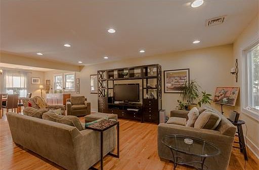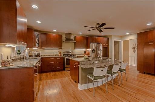 Completely renovated 7 years ago, custom home, features open floor plan w/2 staircases. Over 2900 sq. ft of living space, kitchen has granite center island table seating, hardwood floors throughout, recess lighting, ceiling fans, 2-zone heat and air, tankless HWH. Lg. 4th bedroom downstairs has full bath w/walk-in-closet.