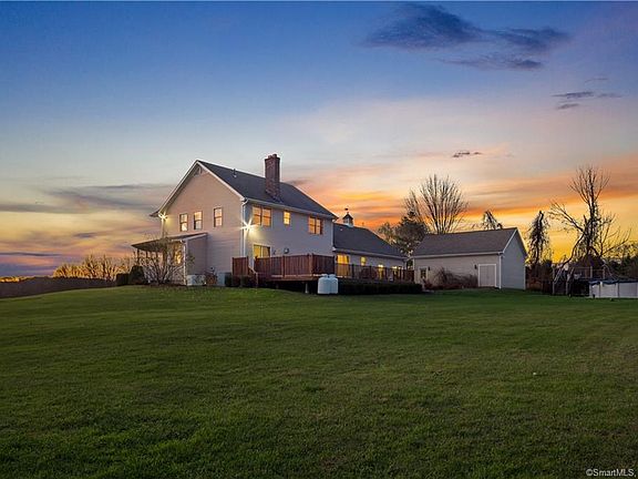 Million Dollar Views! This majestic, custom-built home is superbly sited on 4.5 private acres; an incomparable setting. From the massive front porch, beyond the large, well-manicured lawn, enjoy distant westerly vistas and sensational year round sunsets. The interior is spacious and striking, with HW floors throughout, a generous remodeled eat-in kitchen, formal dining room, sunken family room and office on the main level, all with easy access to the huge back deck, patio, level backyard and pool. The MBR features a cathedral ceiling, palladium window and beams. The bedrooms are sunny and bright and boast great views. The attached garage, plus an adjacent barn, provide room for 5 vehicles and loads of storage or a separate at-home work location. If space, peace and serenity are what you seek, this is the place!