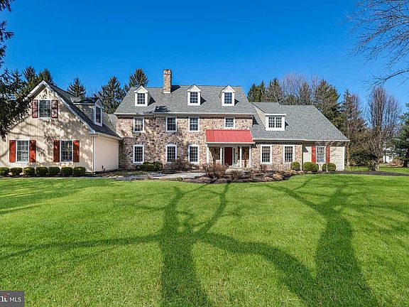 Dramatic tree-lined approach in one of Solebury's most coveted neighborhoods leads to this stately Bucks County stone manor house set back from the street on 2 tranquil acres. This 5,770 sq.ft. center-hall colonial is exceptionally well designed with a mix of formal & casual living spaces. Beautiful decor including designer lighting, sun-filled rooms with well-chosen colors, faux finishes & the use of natural materials. Soaring spaces in the foyer & family room, w/carved oak beam ceiling, stone hearth fireplace & windows showcasing the glorious views. Hardwood floors, plantation shutters, & extensive millwork throughout, while the living & dining rooms share a 2-sided fireplace. A 1st floor library boasts paneled wainscotting & custom built-in cabinetry. The gourmet kitchen was completely remodeled in 2014 by American Homestead Kitchens, includes a tiered-island, built-in Sub-Zero refrigerator, under-counter beverage cooler, a stone wall housing a dual fuel Wolf range w/double griddle, double ovens, warming drawers, 2 Asko dishwashers strategically placed near sinks, custom lighting, & hand painted tile from a local artist. Open to the breakfast room w/skylights & sunken conversation pit w/2-sided fireplace. Palladium doors along the rear of the house provide access to a sprawling outdoor living area w/multi-tiered decks connected by a flagstone patio w/firepit, terraced gardens, pergola & heated salt-water pool w/spa. 1st floor master suite has vaulted ceilings, sitting room w/skylights opening to a private deck w/hottub, 2 walk-in closets, & sumptuous bath w/seamless glass shower, sauna, soaking tub & leathered granite vanities. Front or back staircases lead to 2nd floor w/4 bedrooms consisting of a junior suite w/full bath & walk-in closet, another en-suite bedroom, & 2 more bedrooms sharing a hall bath. The Game Room has built-in cabinetry & filing cabinets, a fully equipped wet bar w/mini-fridge, hardwired w/Bose speakers. In addition to the main floor laundry, there is a laundry station conveniently located on the 2nd floor. Full walk-up attic with dormers could be finished. Partially finished basement w/outside entrance adds additional living space. Oversized 3 car garage w/inside access near the back stairs. Located along the New Hope?Doylestown corridor in the very desirable Blue Ribbon New Hope-Solebury Schools & all that the Delaware River Park system has to offer. 1-hr drive from Newark & Philly airports, half hr to Amtrak, 30 min to Princeton