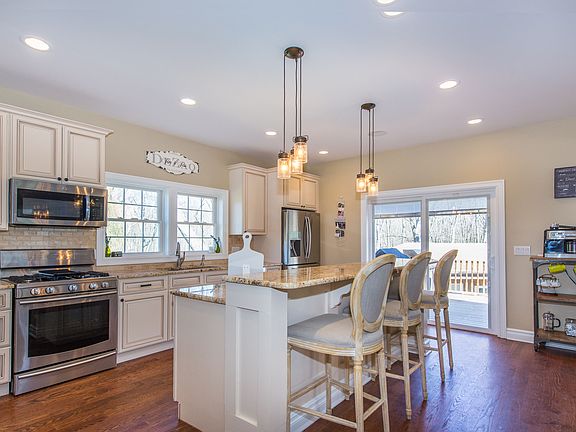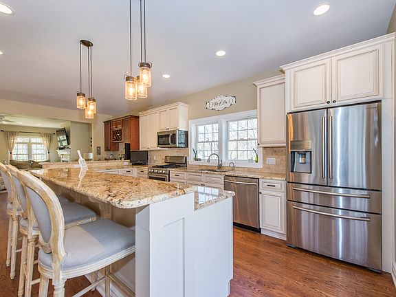 Welcome Home! This beautiful custom designed center hall colonial has it all! Hardwood floors and custom molding throughout! A custom kitchen featuring stainless steel appliances, custom wet bar and open floor plan with 3 sets of sliding glass doors leading out to a beautiful deck, makes this home perfect for entertaining. Second floor has 3 large bedrooms, Jack and Jill bath, large master suite with huge master bath and a balcony off the master suite for enjoying your morning cup of coffee or evening glass of wine. A walk up 3rd floor with full bath and 2 large bedrooms. Home equipped with a state of the art security system with keyless entry, stereo system in and out and intercom throughout. Wiring installed and ready for security camera hook up. Basement has 2 sliding doors leading out to patio.