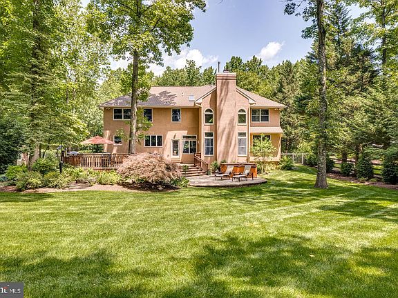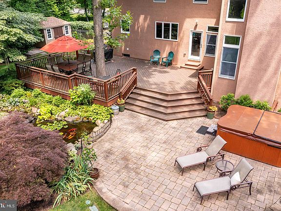 Welcome to your own private Oasis! Situated on professionally landscaped, private park-like grounds in the exclusive Bennington Woods community, this stunning home offers luxury, comfort, and top of the line upgrades throughout. Freshly refinished mahogany inlaid solid oak floors, custom milled moldings, fresh paint and soaring ceilings are waiting to greet you. The living room offers the same gorgeous wood floors and easy open flow to the back of the home. The dining room presents a coffered ceiling and a full-sized bow window overlooking the manicured front yard, while the gourmet kitchen is a chef’s delight with 48" Brookhaven cherry cabinets, granite countertops, a 6-burner Viking double stove with built-in griddle, Sub-Zero stainless steel refrigerator, and an oversized island with additional cabinetry and shelving—perfect for entertaining or everyday use. The step down family room opens from the kitchen featuring Brazilian Cherry hardwood floors and a stunning gas log fireplace. A versatile study or home office is located just off the family room. To the right of the kitchen is the powder room, the laundry and mud rooms leading to the oversized two-car garage offering a full stairwell access to the finished basement. Upstairs, the primary suite is a lavish Medford retreat, complete with new plush carpeting, a large walk-in closet with dressing area, and a spa-like en suite bathroom. This bathroom boasts heated tiled flooring, marble countertops, a double Brookhaven vanity, jetted spa tub, and a natural stone walk-in shower with dual shower heads and body sprays. There are three additional bedrooms on this level sharing a well appointed full bathroom. The finished basement, freshly painted with brand new carpeting, offers a movie theater seating area (included) on one side and a versatile space for games or a home gym on the other along with additional storage rooms. What a great space for family game night or watching your favorite movies! Now for the backyard… A spectacular sanctuary reminiscent of a private park is fully fenced in. The newly refinished 42x32ft. IPE premium hardwood custom deck is just off the kitchen and family room leading to a paver patio, an 8 person hot tub and a natural rock pond creating a perfect space for outdoor dining and relaxation. There is also a nice sized shed located to the side for extra storage. Don’t miss the beautiful blue stone patio overlooking the lovely stream at the rear of the property. Listen to the sounds of this peaceful stream which leads to the Rancocas River. The lush landscaping, mature trees, and thoughtfully designed outdoor spaces make this backyard truly exceptional—a place where every day feels like a retreat in nature. Additional features include 2 high efficiency HVAC’s, water heater and a 5 year new roof all offering transferable warranties. This beautifully maintained home seamlessly combines elegance and functionality as well as convenient access to Philadelphia and the Jersey shore. Walkable to The Fourth of July fireworks, the many activities at Freedom Park and just around the corner from Medford’s Main Streets shops and restaurants. Don’t miss your opportunity to own this luxury retreat in one of Medford’s most desirable family friendly communities!