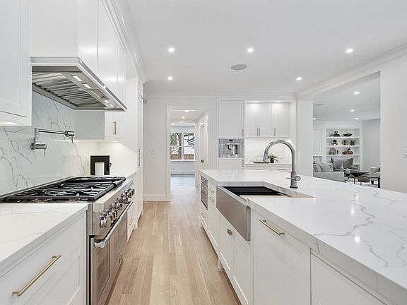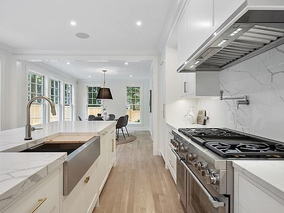 This inspiring newly constructed landmark home situated on a quiet street, combines indoor and outdoor spaces through unparalleled style and masterful craftsmanship. Perched up high, one is greeted with specimen trees, a full motor court and mature landscaping. Bright and airy, this transitional styled home offers an open floor plan, large windows, elegant staircases and a 3rd floor lounge w/roof deck. The kitchen is beautifully appointed with a dramatic quartz island, coffee bar, integrated high-end appliances all overlooking a stone patio and spacious backyard. Relax in formal and casual spaces that exude a warmth throughout all 4 levels. Perfectly proportioned bedrooms feature private en-suites with custom vanities, quartz counters and hand curated tile arrangements. The private adult suite has a restorative and spa-like ambience created by natural light, art walls and a substantial walk in closet. A rare find so close to Boston, just blocks to tennis courts, trails and town center.