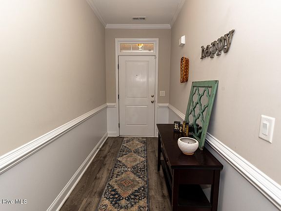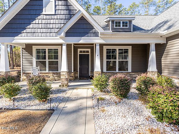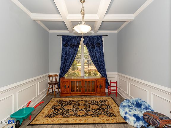 Nestled along the par 3, 8th hole of Foxfire Resort and Golf's Red Fox Course, this beautiful golf-front home offers a perfect blend of comfort and functionality. Built in 2019, this home features an open layout with spacious living areas, ideal for both everyday living and entertaining. Step inside to discover vaulted and trey ceilings that enhance the home's airy feel, while the formal dining room impresses with chair rail trim, wainscoting, and a coffered ceiling. The kitchen boasts granite countertops, a large island, and stainless-steel appliances—perfect for hosting family and friends. The spacious living room features a cozy fireplace, creating a warm and inviting atmosphere. The upper-level bedroom serves as a fantastic in-law suite or guest retreat, while an unfinished attic playroom offers additional potential for customization. Situated on a large lot, this home has an abundance of outdoor living space with an in-ground trampoline and a large storage shed with a workshop. Whether enjoying the scenic golf course views or relaxing in your private backyard, this home is a true gem! Don't miss this opportunity, schedule a private showing today!
