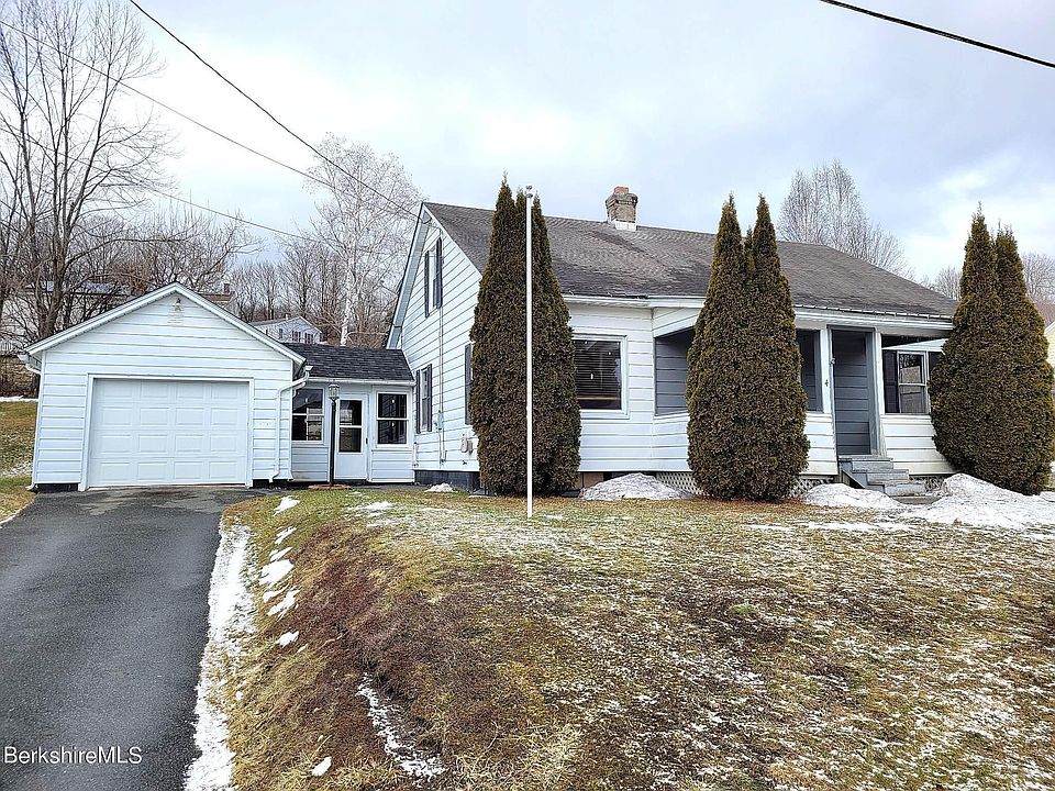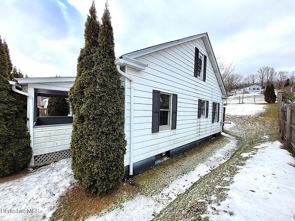 This cozy cape boasts with gleaming hardwood floors on the first floor. Hosting 1 bedroom, full bath, eat-in-kitchen, den with access to a semi private deck area and back yard views. Second level has 2 well sized carpeted bedrooms with plenty of storage options. Breezeway connects to a single car garage. Aluminum siding, asphalt/fiberglass shingled roof, oil fired boiler, electric hot water heater, and 100 amp service panel.