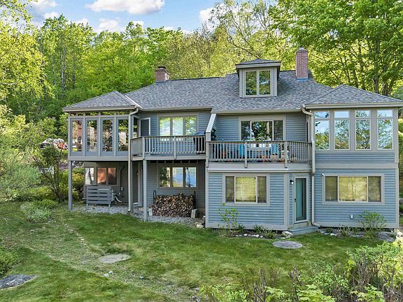 The Ledges on Newfound Lake is a sought-after condo development in the NH Lakes Region. It’s known for its two sandy beaches, large mooring field, jet ski moorings, kayak racks, pool, tennis courts and its awesome lake and mountain views. The Ledges is only a short drive to, shopping, restaurants, and to the Ragged and Tenney Ski Areas. This well maintained 2-bedroom condo is being offered turnkey with transitional style furniture. The main level includes a vaulted living room with central fireplace. The recently updated kitchen has attractive cabinets, granite countertops, a contemporary stove and a whisper quiet Bosch dishwasher. Both the kitchen and dining room have lake views. The three-season porch and connecting exterior deck also have lake views. The lower level offers two large bedrooms and an updated full bath. The upper ½ bath has also been updated, including washer & dryer. A recently installed mini-split AC/Heat Pump system serves the main level and both lower bedrooms. Primary winter heating is provided on each level by efficient, wall-mounted propane heaters.