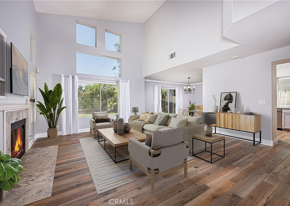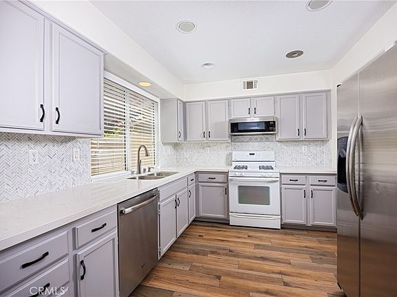 This charming two-story home is tucked away at the end of a peaceful cul-de-sac in the heart of Foothill Ranch. It features three upstairs bedrooms and two full bathrooms, with beautiful new carpeting throughout the upper level and stairs. Upon entry, you’re welcomed into a cozy family room with a gas fireplace with ceramic logs, and a large sliding window overlooking the yard. Enjoy meals in the formal dining room, complete with a chandelier and sliding glass doors that opens to the backyard. The kitchen is well-appointed with quartz countertops, a stylish tile backsplash, brand-new stainless steel Whirlpool microwave, and a stainless steel refrigerator with a water line. The primary suite includes a combined bath/shower and a spacious walk-in closet. Downstairs floors are covered in durable ceramic tile with a wood-look finish—ideal for kids or pets thanks to its easy maintenance. The laundry area is located in the garage, and the washer and dryer are included for the next owner’s convenience. The home boasts a two-and-a-half-car garage with direct access to both the house and the backyard—perfect for storing bikes, toys, or other gear. Set in a friendly neighborhood where neighbors are ready to welcome you, this home is close to Foothill Ranch Towne Center, Whiting Ranch Wilderness Park, and a resort-style community center with a pool, spa, and clubhouse. With easy access to the 241 Freeway and just 20 minutes from John Wayne Airport, this home offers both comfort and convenience.