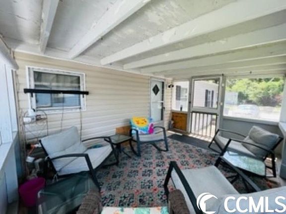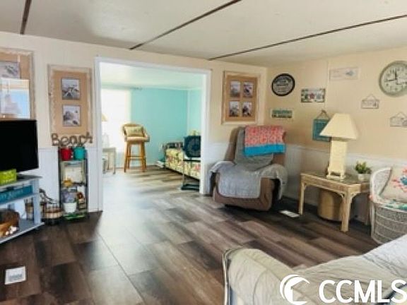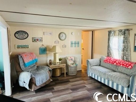 Fabulous opportunity to to have a vacation home or primary residence just a golf cart ride from the Beach! 3 Bedrooms 2 full baths, Family room, Carolina Room & kitchen with a breakfast nook. Terrific large Screened porch & deck with Pond/Lake views. Attached Storage & Detached Shed! Newer Metal Roof & HVAC has been recently replaced. Vinyl sided & shutters added for additional Curb appeal. This spacious Manufactured home is not just a traditional singlewide it has the Carolina Room Addition on the right & the Screened porch on the left. Definitely a must see if your looking for a home in the Garden City/ Murrells Inlet area with just a short golf cart ride the Beautiful Garden City Beaches. Call for an appointment today!