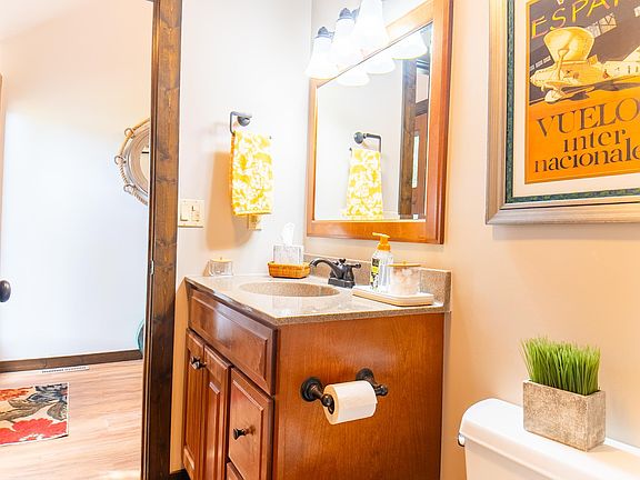 If you're looking for an immaculately-kept, modest home with nice finishes, this is it! Nestled on a beautifully landscaped 0.70-acre lot, this immaculately maintained 2+ bedroom home offers effortless main-floor living and serves as the perfect full-time residence or Galena Territory retreat. With soaring vaulted ceilings, abundant natural light, and a park-like setting, this home is a true gem. Step inside to find a spacious living room, where oversized windows bathe the space in natural light, complemented by a cozy gas fireplace. The primary bedroom boasts vaulted ceilings and ample closet space, providing a serene retreat. A welcoming open entryway highlights the elegant staircase, leading seamlessly into the dining area. The well-appointed kitchen is a delight, featuring cherry cabinets, granite countertops, and a pass-through window to the large formal dining room, making entertaining a breeze. The dishwasher, stove, and refrigerator were all new in 2018. The main level also includes a convenient half bath, a nicely appointed full bath near the primary bedroom, a generous closet area, a spacious laundry room, and direct access to the attached two-car garage. The home offers two staircases—one leading to a charming loft area, currently used as an office but with potential for a third bedroom. The second staircase leads to a large guest bedroom, ensuring privacy and comfort for visitors. Originally built in 1977, a thoughtful addition in 2007 enhanced the home’s space and functionality. Additional features include two separate furnaces, air conditioners, and water heaters. The the exterior was painted in the summer of 2021. A new water softener was installed in December 2021. Don’t miss out on this one! Call today to schedule your private tour.
