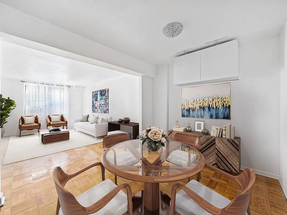 OVERSIZED CORNER UNIT First 4 Photos are Virtually Staged Beautiful and turn-key one bedroom home with open concept kitchen / dining / and living space! The entrance of this spacious home flows wonderfully into the kitchen, dining, and living room areas. High ceilings, and gorgeous hardwood flooring throughout. Counter and storage space abound in the generously proportioned kitchen, replete with cherry wood cabinetry and stainless steel full-sized appliances. Lovely tiled, windowed bath. Massive dual-exposure bedroom large enough to be divided to create an office space. This great space also features windows in every room which provide an abundance of natural light. 4 Bogardus Place is located on a lovely tree-lined street. It is a pet-friendly building featuring an elevator, laundry room, storage room and garage. There's also a courtyard area, perfect for relaxing outside without leaving the premises. The building is a block away from Fort Tryon Park, and a short distance from the A and 1 trains.