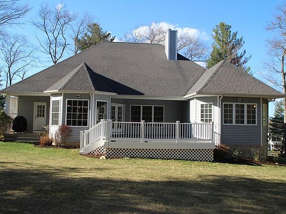 A HOME FOR LIVING AND ENTERTAINING IN STYLE: Bright and sunny one level living in pristine condition, featuring gleaming wood floors in every room, high vaulted ceilings in awesome great room with fireplace and architectural columns by main foyer entrance. Fabulous open floor plan, with view of every room from kitchen area. Brand new appliances, granite counters and cherry cabinetry with abundance of storage, including a walk-in pantry. First floor laundry room with lots of space for folding and access to a small covered patio area. Very generous master bedroom with high ceilings, 2 walk-in closets, and fabulous master bath with separate sink areas, tile floor and Jacuzzi tub. two other bedrooms and beautiful full bathroom on first floor. A second floor rec-room can be used as a 4th bedroom, private guest quarters, exercise room or office. Full basement offer added possibilities for expansion if desired. In addition: Kloter shed, new 17x23 trex deck , sink in oversize garage, wired for portable generator, new well pump and water tank, new sewer pump, programmable thermostats, new kitchen faucet and interior paint, new cabinets in laundry room, shelving in walk-in pantry, heated towel rack in master bath, 3 zone heat. all this located near popular Crystal Lake area with lake rights. Just a pleasure to show.