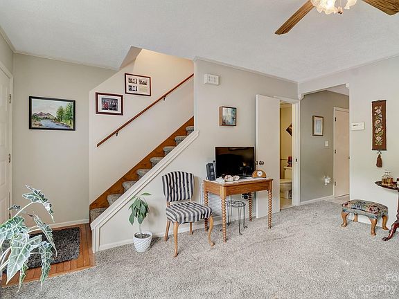 Rare opportunity to own a unit at Bramblewood. Small 10 unit complex tucked away in a wooded setting off Sweeten Creek Rd. Fantastic central location to shopping, dining, breweries, entertainment, Blue Ridge Parkway, medical, and more. Full eat-in kitchen with plenty of cabinets, utility closet & walk in pantry. King sized Primary bedroom. Large deck with outdoor storage closet overlooks wooded backyard with running stream.