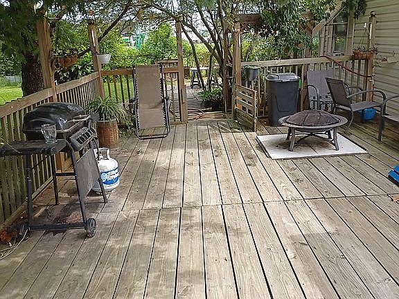 16 x 80 MH w 24 x 16 front deck; 8 x 16 back deck; wood paneling through out; master bath has whirlpool tub and walk in shower; located in trailer park; 10 x 16 work shop and small greenhouse. Please get preapproved before contacting.