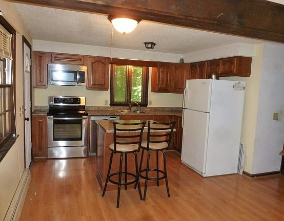 Charming country cape features a newly updated country kitchen with island, stainless stove, dw and fridge, huge open dining area with bay window & laminate flooring; newly updated tile bath w/ step in shower; sunny living room w/ wood stove & hearth; first floor bedroom w/ laminate floor; 2nd floor two very large bedrooms, area set up for future bath( plumbing is said to be in the wall); full basement w/ new propane boiler, circuit breakers, generator panel & generator, walk out to rear yard; 2 car carport to keep the snow off; nice yard with lots of privacy, brook across the rear border. Very convenient country location in nghbrhd short ride to major hi-ways. Great home to build sweat equity... Many expensive updates, new stain on house. New floors upstairs have been done as well.