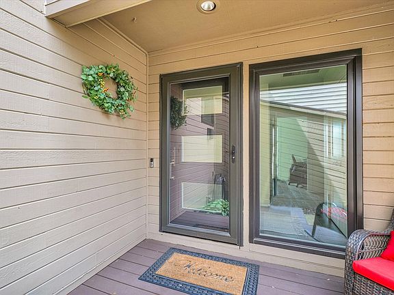 Welcome to this beautifully renovated 2-bedroom, 2.5-bathroom condo offering 1,830 sq. ft. of thoughtfully designed living space. The main level features an open-concept layout with hardwood flooring throughout. The sleek, modern kitchen boasts new white cabinetry, quartz countertops, stainless steel appliances, and a convenient breakfast bar. What was once a laundry room has been cleverly converted into a bright, functional office space, ideal for remote work. Upstairs, you'll find additional living space with direct access to a balcony overlooking the beautifully maintained courtyard. The primary bedroom offers a spacious walk-in closet with custom shelving and an ensuite bathroom. The second bedroom also includes its own ensuite, providing comfort and privacy for guests or family members. The laundry has been relocated to the second floor, featuring a new all-in-one washer and dryer for added convenience. Beyond the interior, this condo extends your living space with a private deck, and residents also enjoy the luxury of a private pool, perfect for cooling off on warm days or unwinding with neighbors.