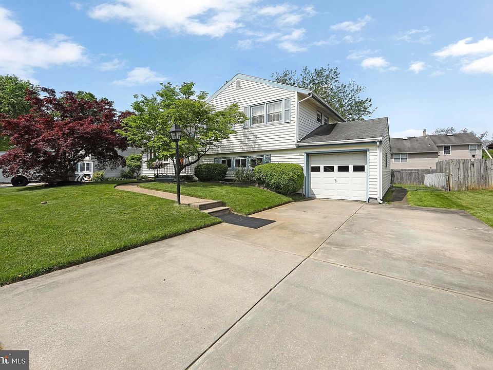 Don't miss this lovely updated and well cared for split level home in the desirable "Alden Park" neighborhood in Maple Shade! This home has beautiful curb appeal with lovely landscaping, and a great cul-de-sac location. Enter this home from the front porch through the glass storm door and insulated wood look door with leaded glass accents. There is a large and spacious living room with large bow window, and a brick linear dual sided fireplace that's sits on a whitewashed brick wall. The fireplace also warms the dining room that features a sliding door with blinds in between the glass and leads to a huge 2-tiered deck (16.5 × 24 plus an additional 10 × 10 lower deck) and a large back yard- great for entertaining! There is a shed and good-sized yard with lots of landscaping. The kitchen is updated with lots of wood cabinets, granite countertops with an undermount sink, ceramic tiled back splash, all stainless-steel appliances, breakfast bar and a large pantry with roll out shelves. Down a few steps to the huge family room that features a gas fireplace in a open and spacious room. There is an expanded/enlarged laundry area with extra cabinets for storage, a utility area, and a full bathroom with a stall shower. The access to the garage that features a workshop area and a garage door opener. Upstairs is a large Primary bedroom, also with carpeting over wood flooring and a large double sized closet. There are 3 additional bedrooms with ample closet space, and a full hall tiled bathroom with a tub/shower and a large vanity. The lower level is ideal as an in-aw suite with its own private entrance! Additional features include- wood flooring under carpeting, updated HVAC (2013), all vinyl windows, and much, much more! Show and sell!!!