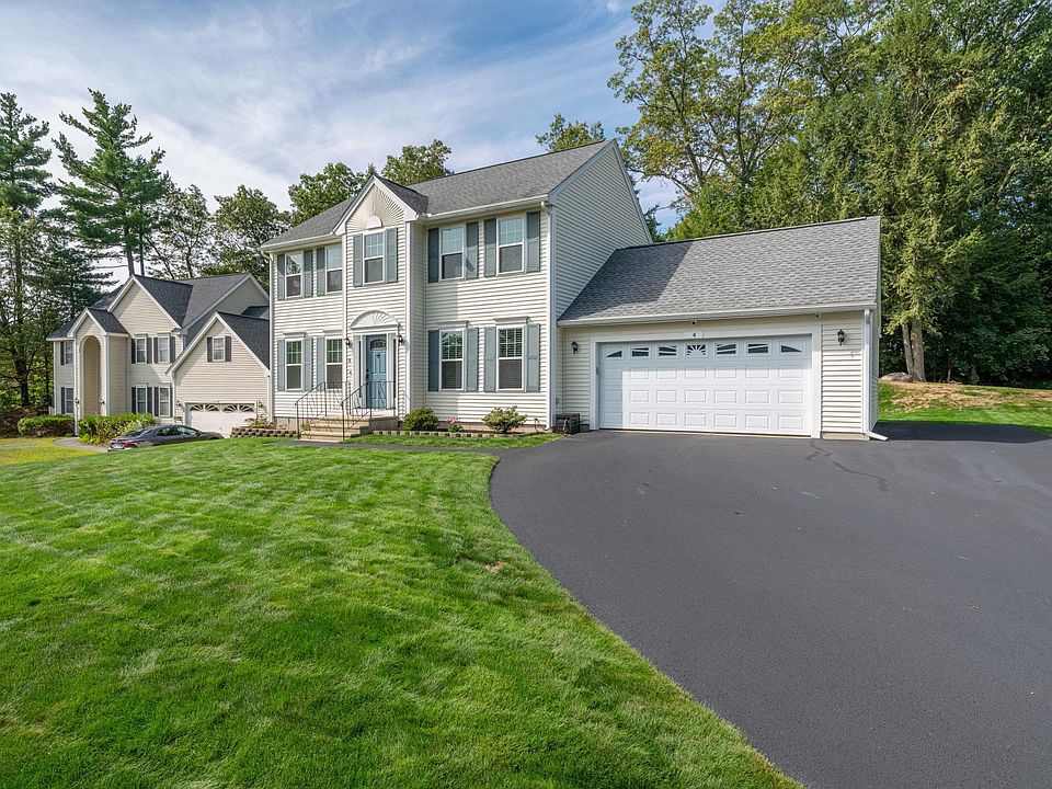 Open house is canceled Must-See Like-New! This beautiful Colonial-style home is tucked away on a quiet cul-de-sac and shines with updates throughout. The first floor features a newer kitchen with granite countertops, stainless steel appliances, and a formal dining room. A front-to-back living room, gleaming hardwood floors, and tile accents complete the main level. Seller is leaving GE W/D all in one. Upstairs, the spacious primary suite includes its own bath and walk-in closet, while two additional bedrooms offer room for family, guests, or a home office. The finished lower level adds even more versatility with space for an office, gym, or playroom. Major updates have already been done for you, including newer windows, roof, heating system, central air, and more. Enjoy the convenience of easy access to shopping, schools, walking trails, and Route 3—while still savoring the privacy of a neighborhood setting. Truly move-in ready, this home has nothing left to do but unpack and enjoy!