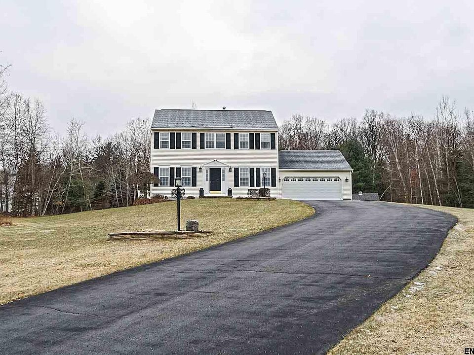Beautiful Beginnings on Bridle Court! Pride of ownership abounds in this originally owned, cul-de-sac nestled Colonial Home. 1.48 amazing acres atop a Private & Pristine setting w/Sensational sunset views! Beautifully constructed 3 Bedroom, 2.5 bath home.~Living Room, Formal Dining Room w/custom molding too~2 finished rooms below: (Family room & office) Eat-in Updated- Granite Kitchen, leads to an entertaining deck overlooking a pretty yard. East Greenbush Schools, Minutes to I/90 ~Your Dream Home For Sure~