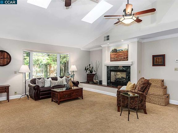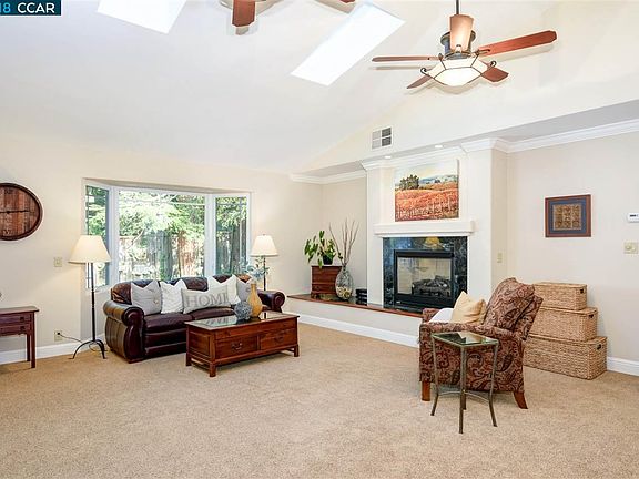 Beautiful single story westside Alamo home on approx 1/3 ac lot w/ 4 bedrooms, 2 bathrooms, an office, gorgeous wood floors, Milgard windows, double entry doors, custom concrete counters, white cabinets, garden window, crown molding, natural light, warm colors and rich floors. Living room has a lovely bay window, skylights, stunning gas fireplace with marble surround. Master suite has direct access to peaceful backyard with a deck and a comforting master bath with marble counter and custom shower. Private & serene yard, mature landscaping, high quality Ipe wood deck perfect for entertaining, redwood deck and oversized garage with an office/hobby room, large separate storage/workshop area. Open Sunday 1-4!