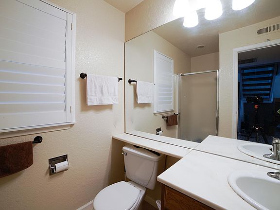 12 month lease and then month to month: 2 story 1212 square foot condo with two bedrooms and two baths. New stacked washer/dryer in unit and new dishwasher. Granite countertops in kitchen with refrigerator, disposal, microwave, and breakfast bar. Ground floor is tile with living room, fireplace, dining area, kitchen, and bath with shower. Slider doors either side of fireplace lead out to fenced in patio. Large master bedroom upstairs has balcony, walk in closet and high ceiling. Both bedrooms are carpeted and share bath with tub, shower, two sinks and sky light . Unit has central air and heat and shares common wall with neighbor on one side only. Can walk to grocery shopping at Safeway or Smart and Final. Movie theater, coffee shops and restaurants also within a short walk. Three parks are nearby: Pinewood Park, Frank Salfingere Park and Fairoaks Park. Nearby schools include: Spectrum Center Sequoia Campus, Sequoia Elementary School, Sequoia Middle School and College Park High School. Owner pays credit check. Score of 700+ required and income three times monthly rent. No pets. $2595 deposit. Garbage included in rent. Water and electric are renter's responsibility