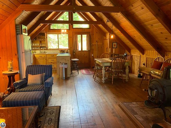 Located just outside of the villages of Pinecrest and Strawberry is Bumblebee Tract with several year-round cabins and driving access. This large mountain cabin is the newest and possibly the nicest cabin amongst the cabins. Just about 5 minutes' drive from villages of Strawberry and Pinecrest Lake with fishing/hiking/boating all just minutes away. Winter you can snow mobile or x-country ski from your door. This remarkable cabin sits on almost a half an acre consisting of 3 spacious bedrooms 1 ½ bathrooms, an open concept living area with the living room, dining and kitchen as one very large room with a wood burning heat stove (yes central heat too) all finished from floor to the high vaulted ceiling in beautiful hard to find blue pine. The open kitchen has everything you need in a kitchen including a nice breakfast bar so everyone can sit around watching breakfast pancakes being cooked while you have your first and maybe 2nd cup of coffee (or maybe you bloody mary). Downstairs are the 3 spacious bedrooms, the full bathroom and the half bathroom, laundry area and a little sitting area (which is a good space to be taking off your dirty fishing boots after a day out catching your limit of fish). At the entry of the bedrooms is a sitting area for putting on makeup or just looking in the mirror before heading upstairs and getting the day going. The downstairs is also all finished in blue knotty pine walls and ceilings, the feeling of what a cabin should feel like. There are decks off each end of the cabin for sitting outside in the afternoons and evenings having a quiet glass of wine or cocktail after a long day of doing whatever you wanted. One of the decks will almost always be in the shade if you want to get out of the sun or sit in the sun if that is what you feel like doing. There is seller financing available too! To review, beautiful blue knotty pine throughout, open concept living so you get to talk to everyone, 3 spacious bedrooms and 1 ½ bathrooms, indoor laundry and great outdoor decks. The decks of each end of the cabin are designed to act like a garage to park your fishing boat under one and your mountain Jeep under the other, just the right size. Looking for that getaway from everything come to the mountains and look at this amazing getaway. The HOA is $300 per year including water and snow plowing.