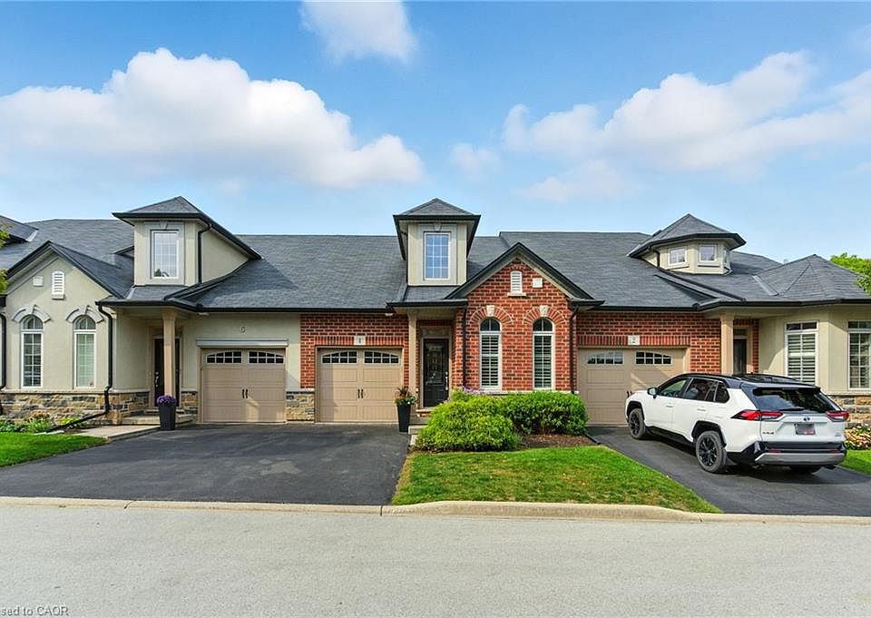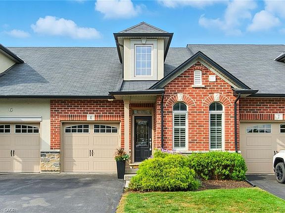 Welcome to 4 Burgundy Grove, an executive-style bungaloft designed for those looking to downsize without compromise. With exterior maintenance taken care of, you can relax and enjoy almost 1,700 sq ft of elegant living space paired with a finished lower level for added versatility. The main floor offers a thoughtful layout with a primary suite featuring two closets and a spacious five-piece ensuite, ensuring comfort and convenience. At the front of the home, a bright office/den or sitting room and a two-piece powder room create the perfect work-from-home or guest-friendly space. The open-concept kitchen, dining and living area is ideal for entertaining, flowing seamlessly onto a private patio with wrought iron fencing overlooking peaceful greenspace. Upstairs, the loft level presents a large family room and a second generously sized bedroom with its own ensuite, perfect for guests or extended family. The finished basement extends the living space with a second family room, two additional bedrooms, a full bathroom and plenty of storage. Located in Ancaster’s sought-after Meadowlands community, this home is close to shopping, dining, and everyday conveniences, with easy highway access for commuters. Don’t be TOO LATE*! *REG TM. RSA.