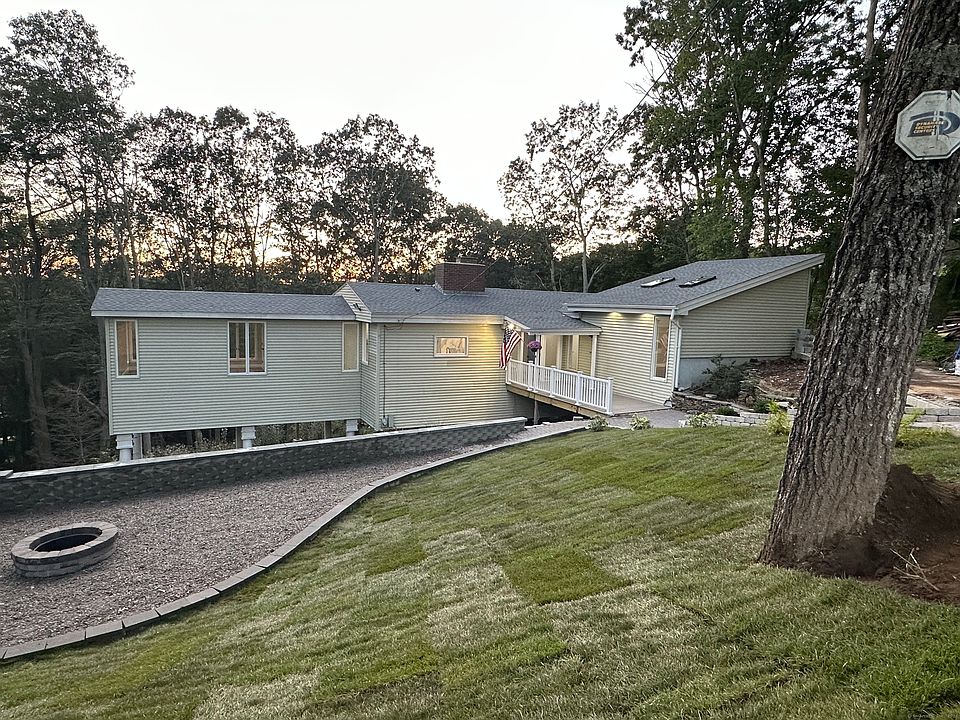 - Exterior features: Rain Gutters, Garden, Lighting, Stone Wall