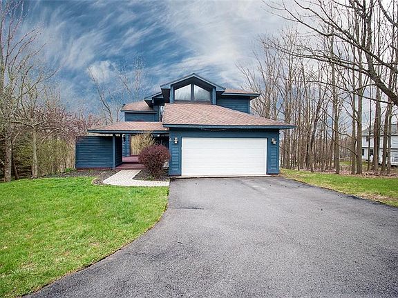 View the amazing sunsets from your fireplaced living/dining room and large deck. This spacious 5-bedroom contemporary home has a 2-story foyer and located on a beautiful wooded lot. The quartz counter-topped kitchen has views of dining room and open eating area for every day use. Two fireplaces and walk out basement. This home is a must see if you are looking for a home of your dreams. Fully finished basement with walk out to a great patio makes it a multi-purpose room for sure. (lower level ws used as two bedrooms with the present owner)