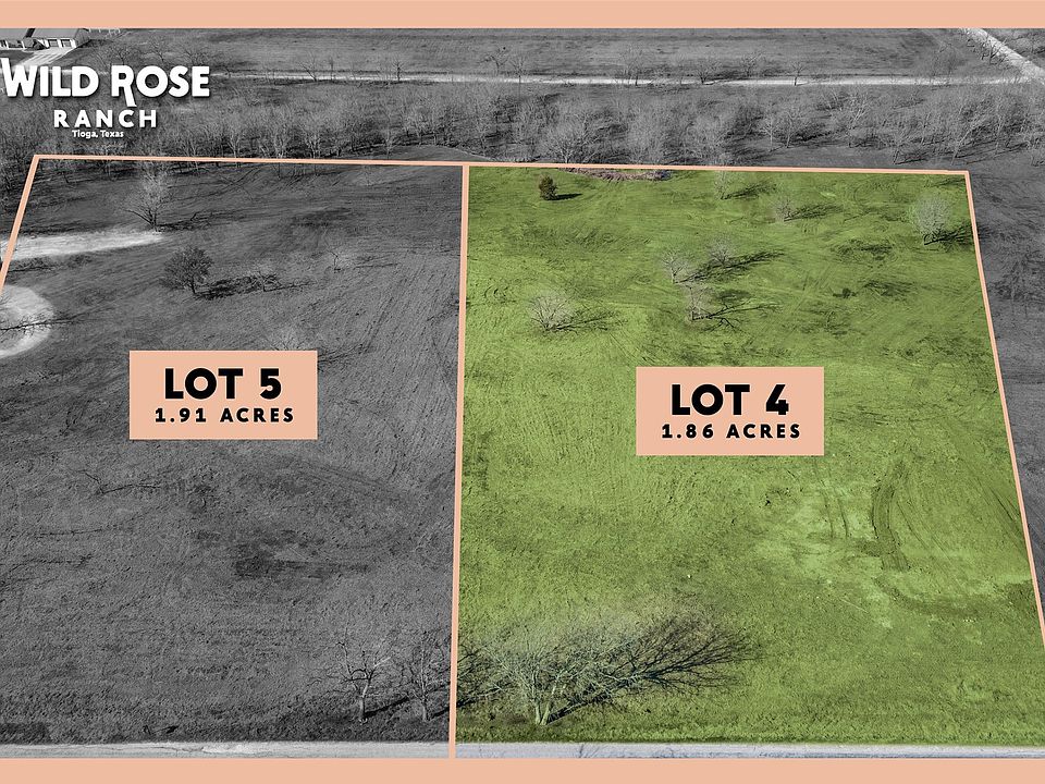HUHE PRICE DROP!! PRICED TO SELL FAST!! Start Building Your Custom Dream Home or Upscale Barndominium NOW on this 1.86 ACRE Lot in Wild Rose Ranch in Tioga, Tx! Lot Comes Fully Equipped with Water, Electric and Roads. NO City Taxes, NO MUD, NO PID and NO HOA. Lot is in Close Proximity to Dallas North Tollway Providing Easy Access to Prosper, Celina and Frisco and all the Shopping and Stores Including the Upcoming HEB and Costco. Choose to Either Bring Your Own Custom Home Builder, or On-Site Builder Wesley Farr Homes Can Assist You in the Building Process! BARNDOMINIUMS WELCOME! This 1.86 ACRE Tract of Land is Suited for an Amazing Custom Home with a LARGE Build Site and Over 190 Feet of Road Frontage. Horses, Chickens, Cows, Longhorn, Bulls, Llama, Buffalo, Sheep and Goats are Allowed! Accessory and Detached Buildings Allowed for All Your Toys, Including Mother In Law Suite. The Expansive Roughly 2 ACRE Lot Boasts Wooded Trees and a Small Winding Creek that Perfectly Borders the Back Edge of the Lot. Located in Highly Acclaimed TIOGA ISD! Located in County, You Can Get Started on Building Your Dream Home Right Away Plus Save on Your Property Taxes! Current Tax Rate is ONLY 1.67 Percent!! Wild Rose Ranch is Tioga's Newest Exclusive Subdivision with ONLY SIX LOTS FOR SALE Ranging from 1 Acre to 2.80 Acres. Close to Lake Ray Roberts for All Your Boating and Lake Activity Needs! Contact Agent Stephen Reddy Directly with Any Questions & Available Lots List. Minimal Build and Deed Restrictions. Independent Appraisal Available Upon Request Prepared on 5.13.25 Showing Value as $256,000.