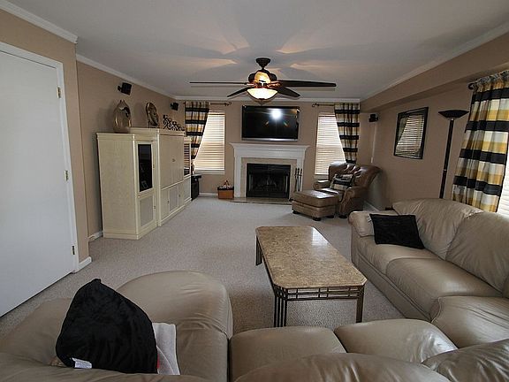 Spacious home in great neighborhood close to shopping & short walk to elem. school. DR with crown molding, chair rails & hardwood floors. Kitchen w/island & granite, travertine backsplash, upgraded stainless steel appliances, lighting fixtures with recessed lights & under counter lights & hardwood floor & Pantry. Two large pillars open to the Family Rm from kitchen with upgraded Berber carpeting, crown molding, fireplace & huge ceiling fan. Master bdrm. with walk in closet. Master bath w/garden tub, stand up shower, large ceramic tiles with tub & shower fully tiled & double sink. 3 more bedrooms with ceiling fans. Pull down stairs full large attic. Stairs & foyer (up/down) with hardwood floors. Foyer open to below. Finished basement & large PVC vinyl deck with island built in. Deck leads to E.P. Henry paved area for more family entertaining. Upgraded landscaping with E.P. Henry Pavers on front side & rear includes night light package. Home warranty, security system & sprinkler system.
