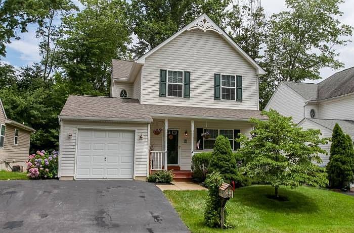 Situated on private street backing to woods, this lovely home offers a very private and peaceful setting. As you enter the home, you will notice the hardwood flooring throughout, the large eat-in kitchen with ceramic tile, and the cathedral ceiling family room overlooking the wooded setting. Moving upstairs, home features a large master bedroom with plenty of closet space and a large master bathroom. Also upstairs, 2 additional bedrooms and a full bathroom. Rounding out the home is a great finished basement, perfect for entertaining and relaxing. Great luxury vinyl flooring and plenty of closet space! This home is maintenance free and very well kept. Just move right in! Fresh paint. Kitchen updated in 2015. New roof installed in 2016. New hot water heater installed in 2020.