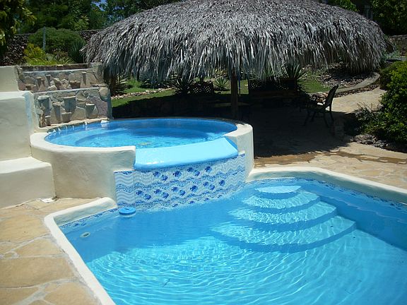 It s Villa with a superb garden, Sea view, 5 bedrooms. (2 in the main house and 3 more in a separate building) 3 kitchens, 4 balconys, Kiosque (Private bar), Pool with jaccuzzi and a fall, garage, Driveway for 3 cars, all fenced, quiet, secure and distance of a walk from the beach.All furnished. Inside of a *Gringo Community*